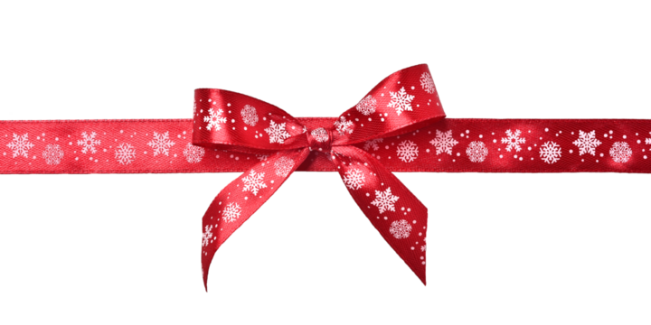 Png transparent background, A red ribbon bow sits centered on a plain white background