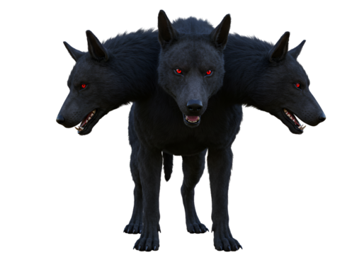 Fierce red devil head with sharp horns and glowing eyes isolated on a transparent background