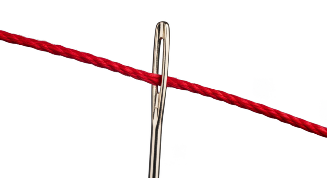 Threaded needle crosses in stark contrast