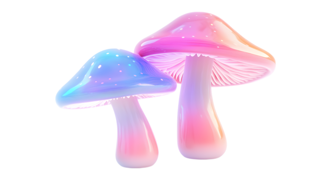 Transparent botanical illustration of whimsical orange-spotted mushrooms