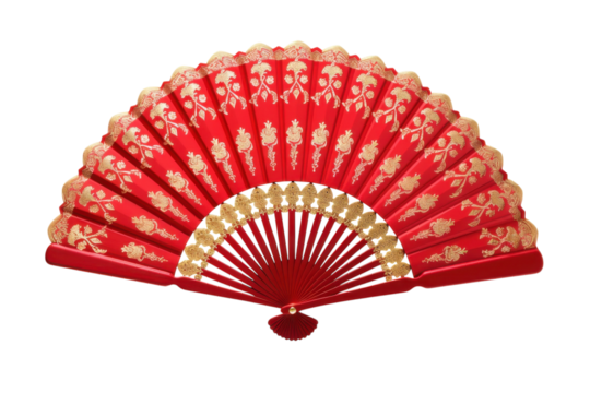 Traditional red hand fan folded paper accessory isolated on black background asian culture design object summer cooling tool concept for elegance handheld decoration