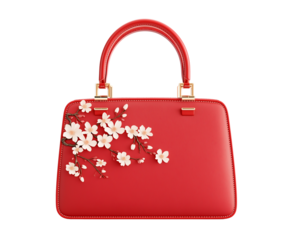Vibrant Red Handbag on Display in a Bright Studio During Early Afternoon Light on Transparent PNG Background..