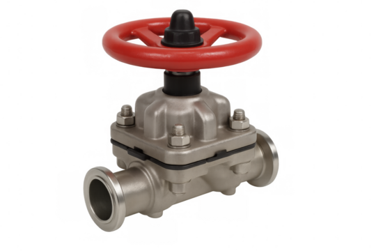 Hand wearing grey glove holding red handle of curling stone isolated on a transparent background