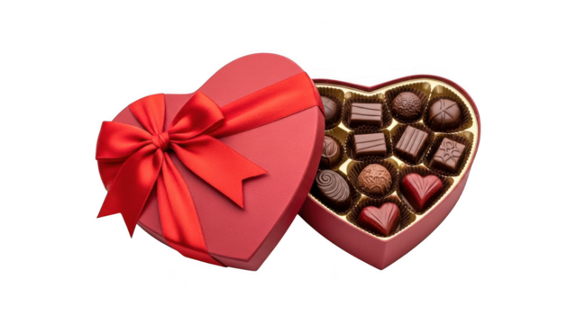 Red heart shaped box of assorted chocolates  isolated on transparent background