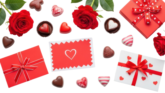 Valentine's day gift collection with roses and chocolates