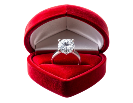 Diamond Engagement Ring in Red Heart Velvet Box – Luxury Isolated PNG