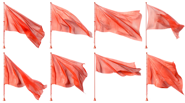 Red Fabric Flag Wind-Blown Design, Wave Cloth for Banner and Signal Themes, isolated on transparent background.