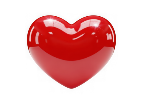 Glossy red heart isolated on transparent background