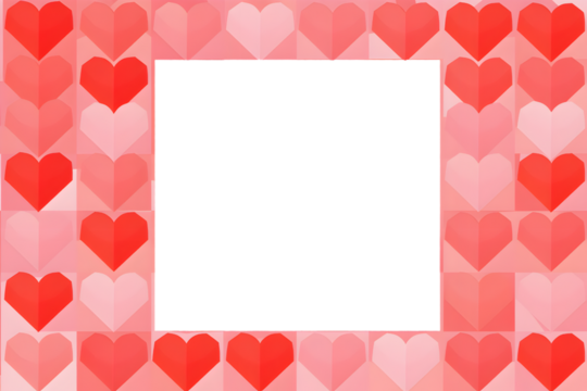 Pink and red heart pattern square frame border isolated on transparent background