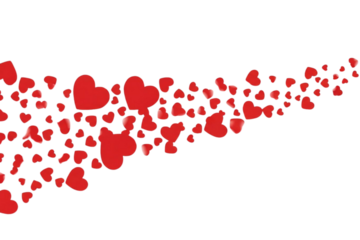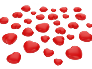 Collection of red hearts in various sizes on a transparent background for love and valentines day concepts