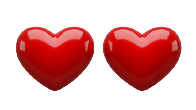 Two shiny red hearts, Two red hearts side by side. Pair of red heart shapes