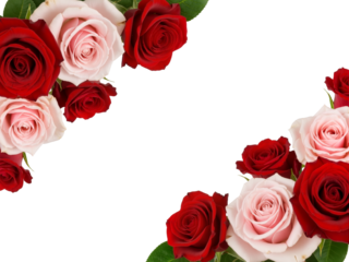Diagonal Bloom: A Romantic Border of Crimson and Blush Roses Framing Elegance and Space