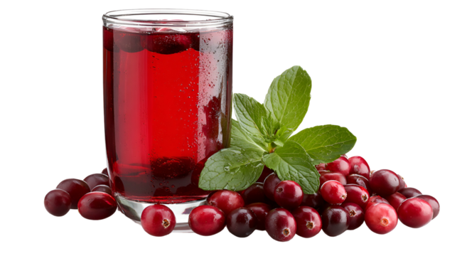 A refreshing drink with cranberries and mint, overflowing with a vibrant red hue