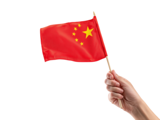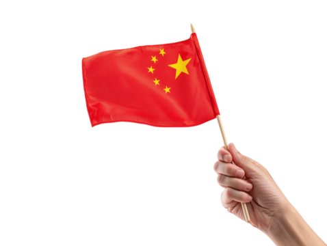 A hand firmly grasps the Chinese flag, its vibrant red hue and golden star symbols proudly displayed