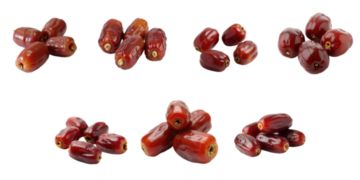 Three clusters of dried chili peppers with vibrant orange and red hues isolated on transparent background