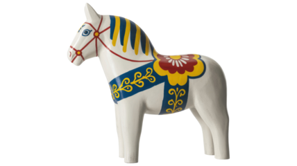A beautifully painted Dala horse, a traditional Swedish wooden handicraft, featuring vibrant colors and intricate folk art patterns. background removed