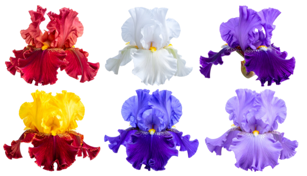 Beautiful blue iris flowers isolated on transparent background. Blue iris flowers isolated on white background.