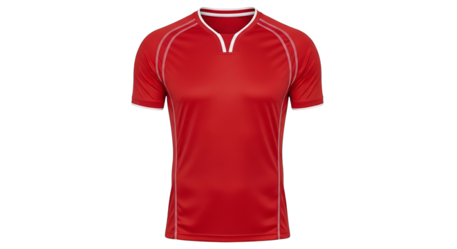 Handsome athletic man in red jersey, upper body shot, cut out transparent