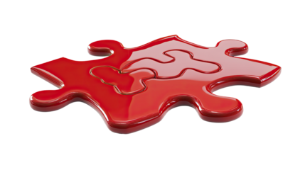 Red jigsaw puzzle pieces assembled in a modern 3D style on a white background