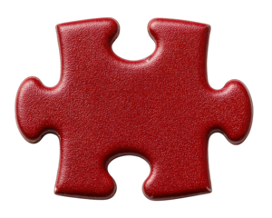 Red jigsaw puzzle piece, symbolizing connection and solutions. Isolated on transparent background, png