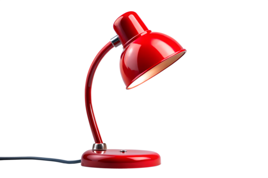 Red architect lamp with adjustable arm and shade provides focused lighting for desk work or reading enhancing productivity and style in any space on transparent background