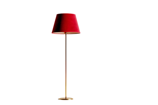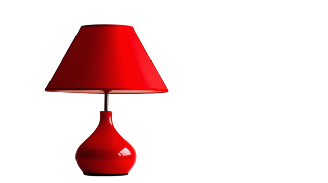 Red ceramic table lamp with conical shade isolated on transparent background. Red lamp isolated on white background.