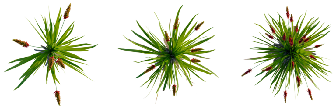 Xeronema callistemon tree plan, top view, cutout, transparent background, isolate, Green rush plant with red blooms, a natural botanical element for design projects