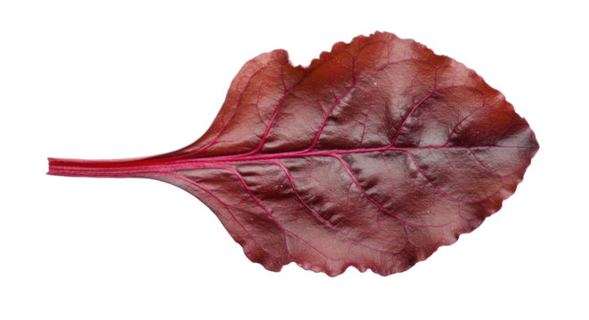 Dried red leaf with detailed veins on transparent background