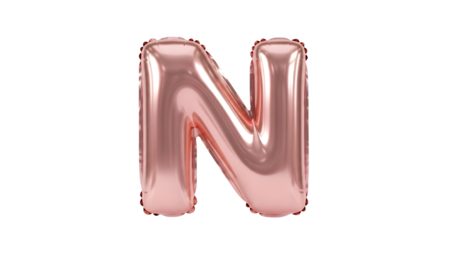 Red metallic n shaped balloon with ribbon isolated on white background for party decoration