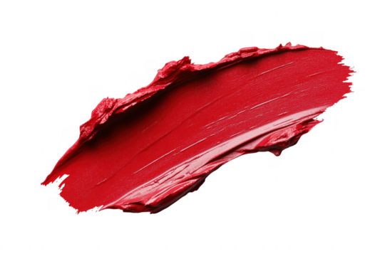 Striking red lipstick swatch against a transparent background showing texture and color depth