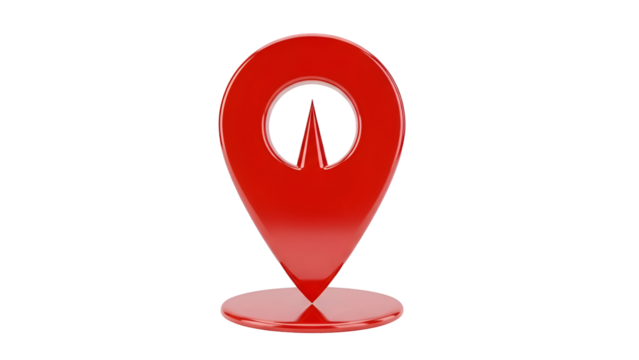 3d rendering of a red location pin symbolizing global positioning, with transparent background for easy integration into various projects
