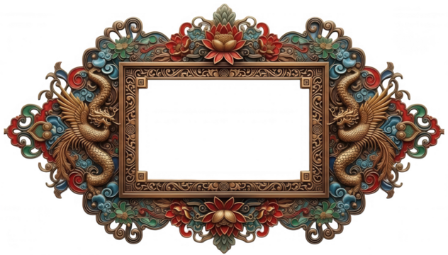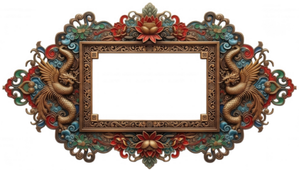 Dragon Frame png Asian Border cutout Oriental Decor png Chinese Ornament cutout Decorative Frame png Vintage Border png Eastern Design cutout Gold