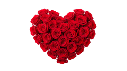 Lush red rose heart bouquet symbol of passion and affection, cut-out design provided as a PNG with alpha channel for wedding stationery and cards.