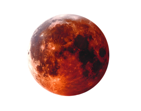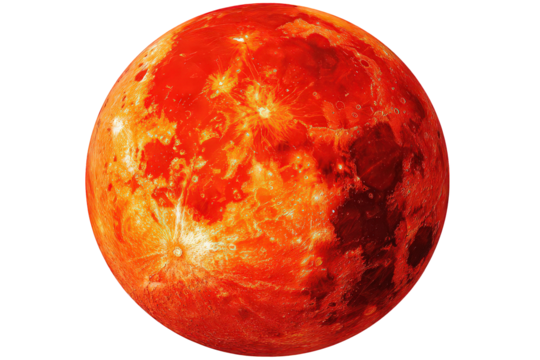 A vibrant red full moon isolated on a transparent background, evoking mystery and celestial beauty