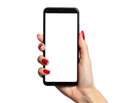 Woman's hand with manicured red nails on a transparent background.