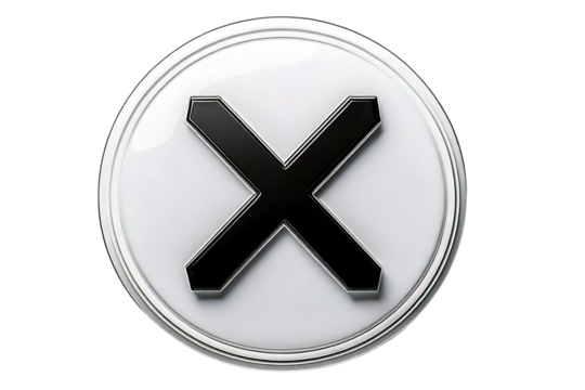 Transparent Background Minimalist 3D White Button with Black X Icon, Rounded Edges