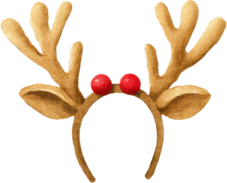 Transparent reindeer icon with red nose and antlers for christmas decor