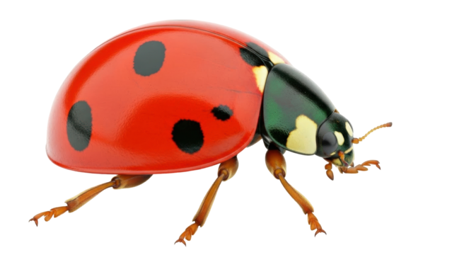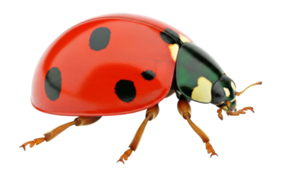 Isolated ladybug close-up of a seven spot ladybird beetle, red beetle with black spots