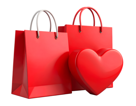 Romantic 3D Gift Combo Red Paper Bag and Heart Box, Transparent PNG Background