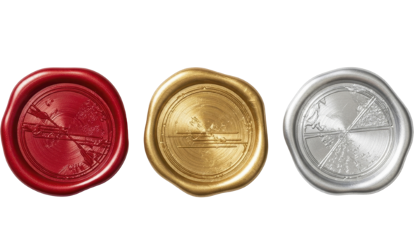 Red Gold Silver Wax Seals with Intricate Nautical Ship Emblems on a Transparent Background PNG File