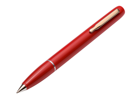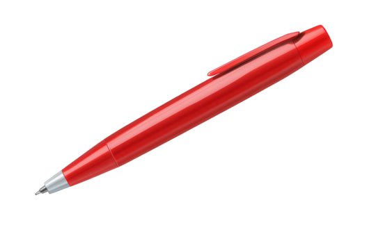 Bright red pen isolated on transparent background showcasing its design and color, ideal for office use or study materials