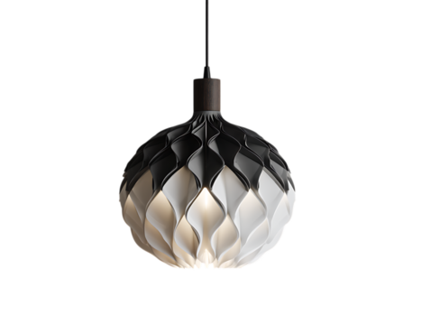 Elegant pendant lamp with lattice shade hanging on transparent background