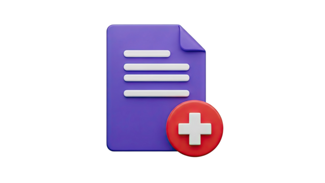 3D document with plus icon on transparent background