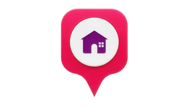 Isolated location pin with home icon, red pointer, home location, address pointer, gps navigation
