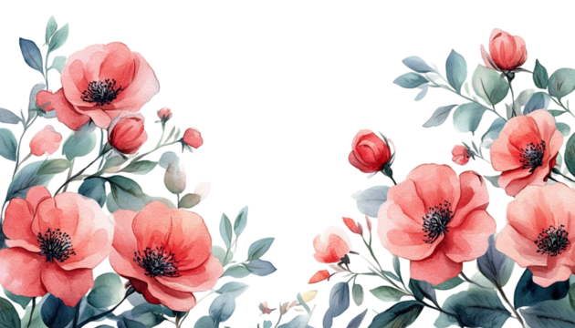Red poppy flowers blooming against transparent backdrop, commemorating remembrance themes
