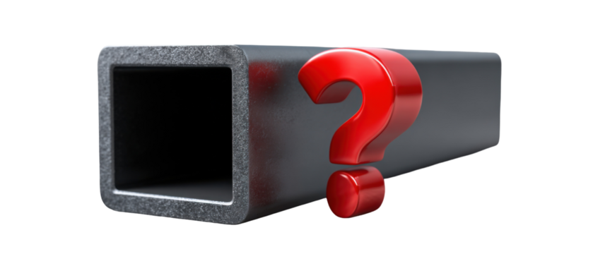 Rectangular steel tube with red question mark symbol