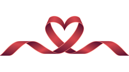 Red ribbon heart loop on transparent background