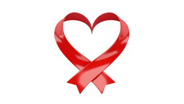 Heart-shaped red ribbon on transparent background