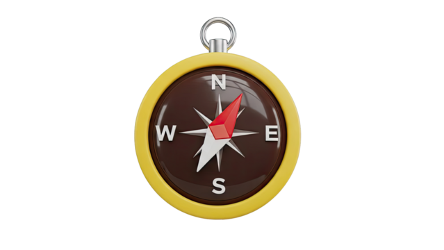 Red compass on transparent background for exploration and travel themes