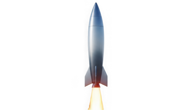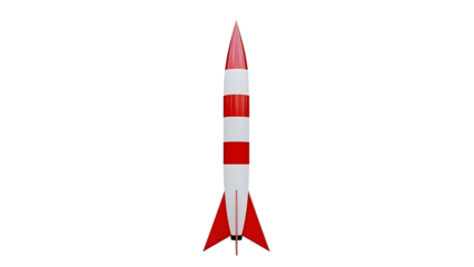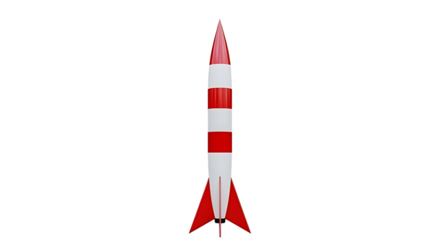 Single rocket, full body, high-resolution stock photo, isolated against a pure white background, sharp focus, neutral lighting, capturing the entire form from base to nose cone, soft shadows